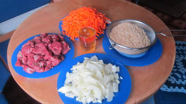 Вот из этих кусочков я и буду готовить плов. Полный набор для плова....